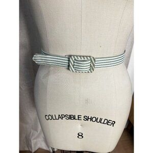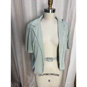 Vintage 1970s Serbin of Florida Green White Striped Short Sleeve Jacket w/ Belt
