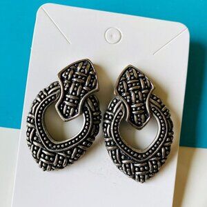 Vintage 1970's Silver Woven Door Knocker Earrings
