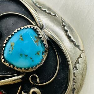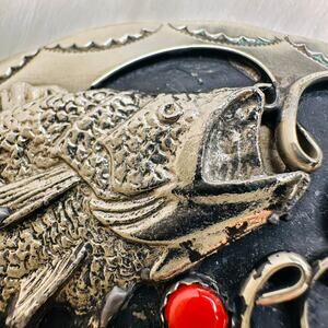 Vintage 1970’s Silver and Turquoise Belt Buckle with Fish
