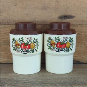 Vintage 1970s Spice of Life Sterilite Salt and Pepper Shakers.