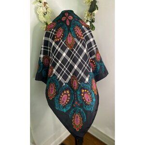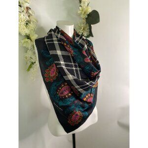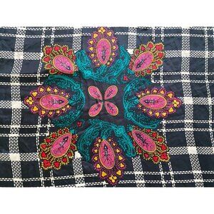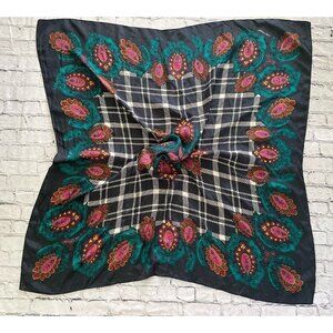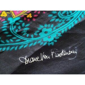 Vintage 1970s Square Diane von Furstenberg Silk Scarf Vibrant Black Multi 42" .  Diane Von Furstenberg Paisley Print Silk Scarf Black Check Print 42 inch. Brand: Diane Von Furstenberg. Style: Scarf, Size: Approx 42 square inches. Color: Black, multi color. Silk scarf with paisley and check pattern. very Good Pre Owned Condition!