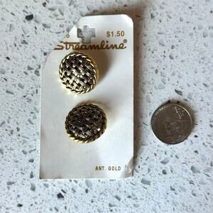Vintage 1970s Streamline 7/8 in Lattice Round Shank Buttons On Card Antique Gold Set of 2