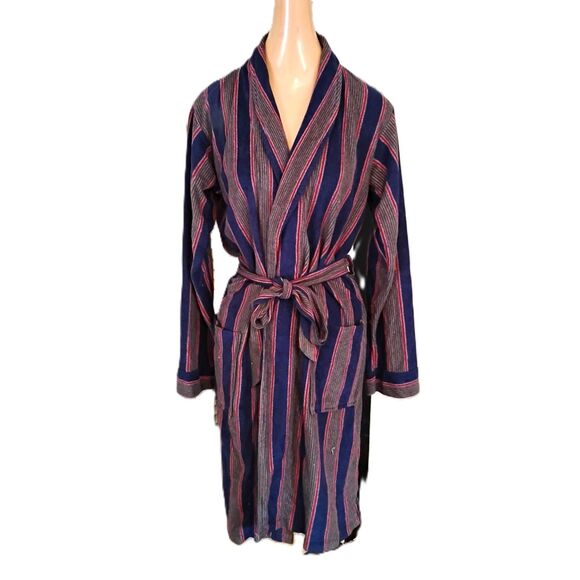 1970s striped velour women's robe from Kmart. No closures, just ties closed. Size Small, 34 to 36 inch bust.