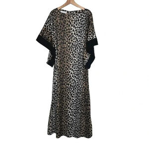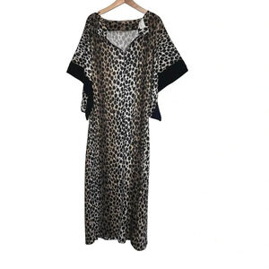 Vintage T.V. Loungers black leopard print dolman sleeve kaftan size L