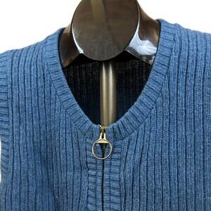 Vintage 1970s Teal Blue Wool Zip Up Sleeveless Sweated Vest / Medium