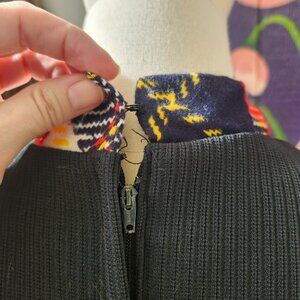 Condition: AS IS vintage condition with typical signs of wear which can include snags, pilling or color variations. Has been gently handwashed but has been in storage so could use a refresh. Zipper is a little touchy. A few loose threads on the inside seams. Is missing one of the loops at the hook and loop closures at the back of the neck.