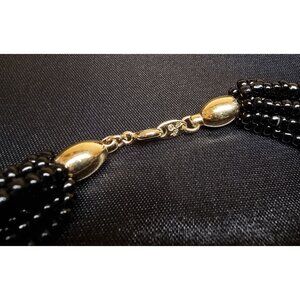 Vintage 1970s Trifari Necklace Multi Strand Black Bead Choker