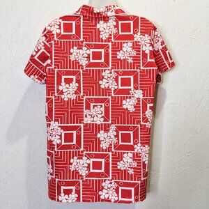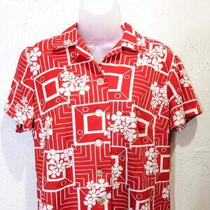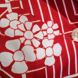 Vintage 1970s Tropical Print Camp Shirt Women's M Short Sleeve Red Button Up