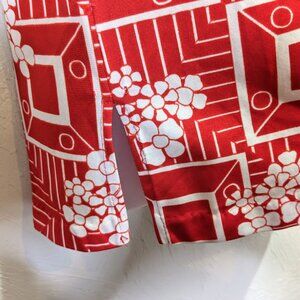 Vintage 70s Tropical Print Camp Shirt Women's M Short Sleeve Red Floral Button Down