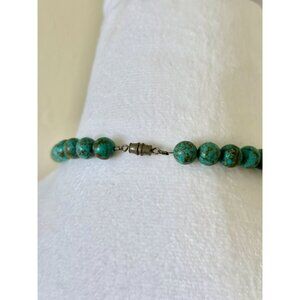 Introducing a Vintage 1970s Turquoise Necklace With Tear Drop Accents. Featuring large and in charge turquoise through out and silver barrel closure. In excellent vintage condition with little to no signs of wear.