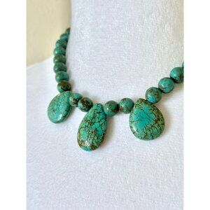 Vintage 1970s Turquoise Necklace With Tear Drop Accents / Turquoise Necklace