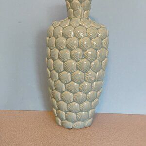 Vintage 1970s seashell vase, turquoise, measures 12" high, in excellent condition