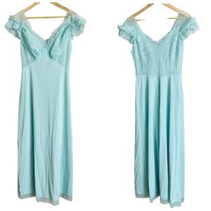 Vintage 1970’s Vanity Fair teal pale Blue Slip Dress Size 36 Small With Lace