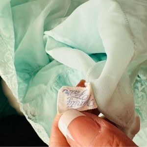 Step into timeless elegance with this stunning 1970s Vanity Fair slip dress in a delicate teal pale blue shade. Crafted from silky-soft nylon, this vintage piece drapes beautifully on the body, offering both comfort and sophistication.