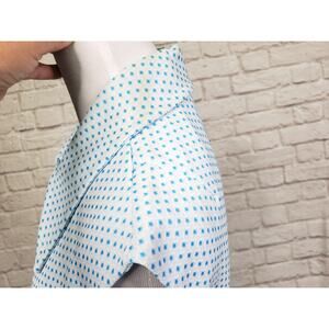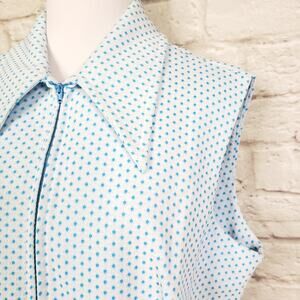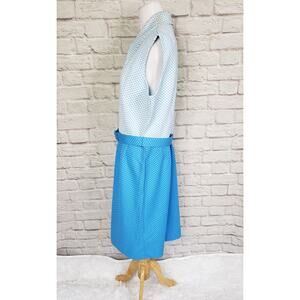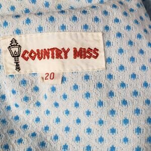 Vintage 1970s Volup Sheath Dress Blue White Dot Pointed Collar Belted Sz 20