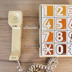 Unique vintage 1970s Western Electric push button telephone with large giant numbers. Excellent vintage condition. No cracks or visible flaws. Collectible item, also usable - is in working condition.