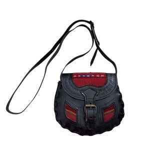 This vintage 1970's Western Tooled Atzec Leather Crossbody Bag is a unique addition to any collection. With a variety of colors and patterns, this bag is perfect for the fashion-forward woman. The exterior is made of high-quality leather, ensuring durability and longevity.