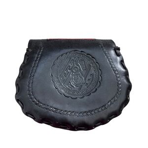 Vintage 1970’s Western Tooled Atzec Leather Crossbody Bag 8”h x 7”I