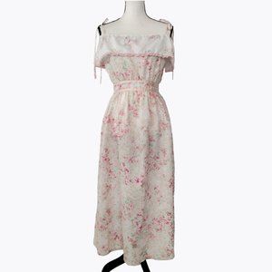 Vintage 1970s White and Pink Floral Column Maxi Dress Size XXS