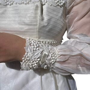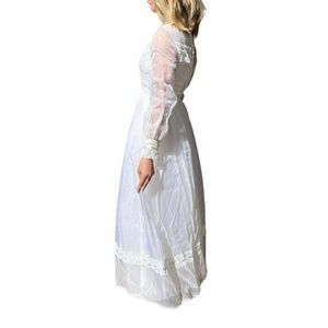 Vintage 1970s White Long Sleeve Lace Boho Prairie Hippy Maxi Wedding Dress Sz XS