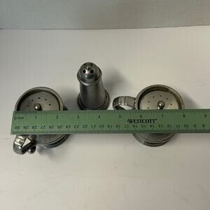 Vintage Wilton Armetale Plough Tavern Collection Pot Belly Salt Pepper Toothpick Set