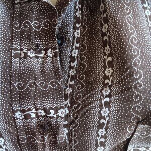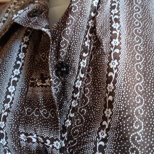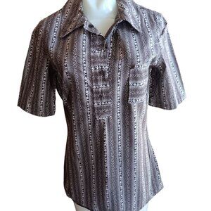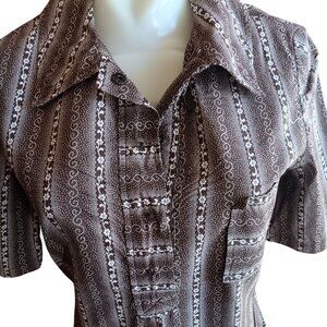 Vintage 1970s Womens Boho Top Small Brown Pullover Psychadelic Print Cotton Sm