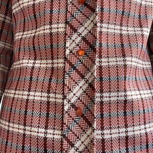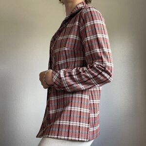 Vintage 1970s Women's Retro Collared Button Up Plaid Red Blue Long Sleeve Shirt