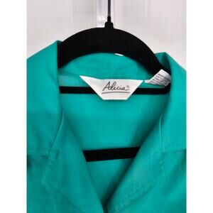 Vintage 1970s Womens Sz 10 Long Sleeve Button Up Blouse by Alicia Teal Blue