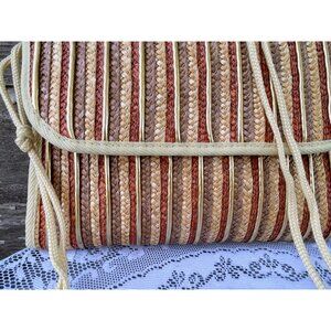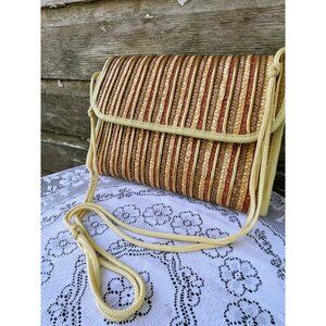 Vintage 1970s Woven Straw Crossbody Bag Purse Boho Retro