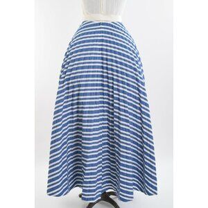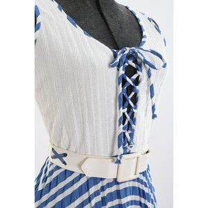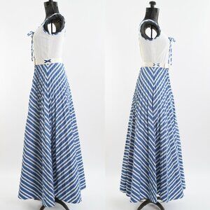 70s Blue White Striped Corset Tie Bodice Sleeveless Maxi Dress Details: