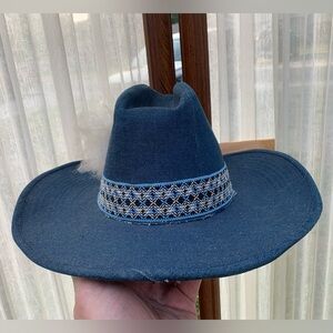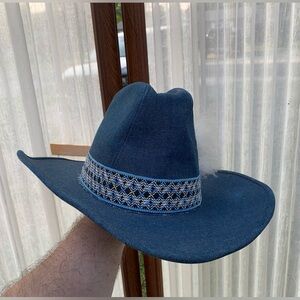 Vintage 1970’s YA Blue Denim Jean Cowboy Hat Size L Dark Wash Western 7 1/4 3/8