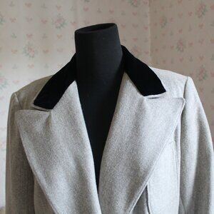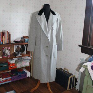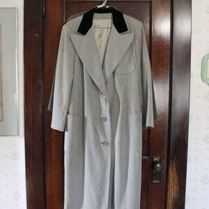 Vintage 1970s Youthcraft Gray Wool Midi Coat, Black Velvet Collar, Union Made