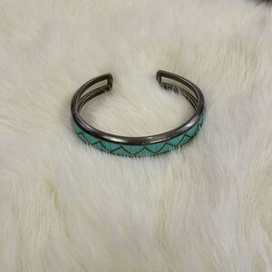 Vintage 1970s Zuni Sterling and Turquoise Inlay Cuff Bracelet MKL Sterling 2 in