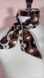 Beautiful fan and dot art deco patterned scarf in contrasting shades of tuxedo brown and black and a gentle off white. Smooth double layer satin material in a long thin shape with pointed ends. Perfect little neck scarf that is soft against your skin.