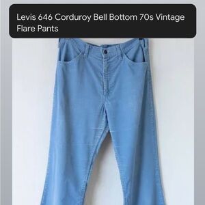 Vintage 1970s zipper up powder, blue corduroy flare pants in great condition!