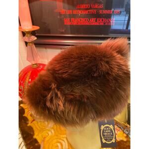 Vintage 1970s brown fluffy shearing hat lamb skin Italian winter ski outdoor