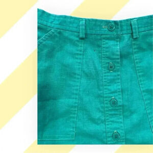 Vintage 1970's green cotton button front with pockets A-line Skirt