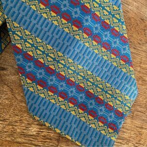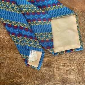 Vintage 1970s men’s polyester tie striped blues gold red