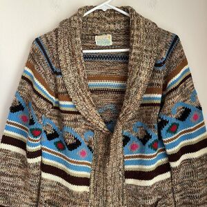 Vintage women’s 1970’s waves knit boho stripped bell sleeve cardigan open front sweater medium