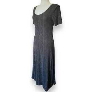 Gorgeous Vintage Black Sparkly Short Sleeve Scoop Neck Evening Gown by Dawn Joy Fashions.