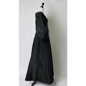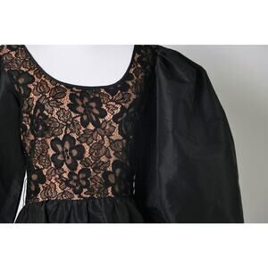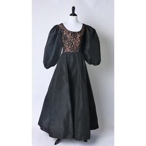 Vintage Black with nude illusion lace gown. The oversize bishop sleeves are full of fashion drama. The gown also has pockets. No labels/tags.
