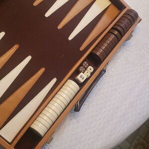 Vintage 1970s Felt and Faux Leather Backgammon Game Board in Faux Leather Case