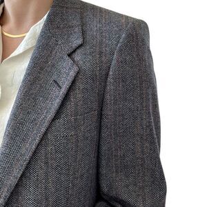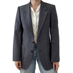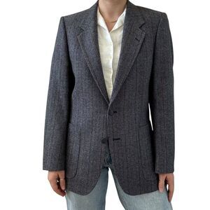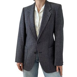 Vintage 1970s Yves Saint Laurent YSL Blue Gray Tweed Striped Sport Coat Blazer