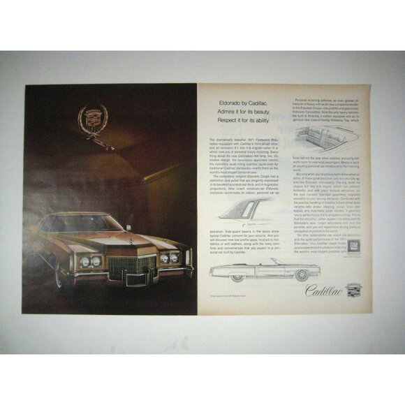 Vintage 1971 Cadillac Eldorado Coupe Advertisement Print 2 Pages