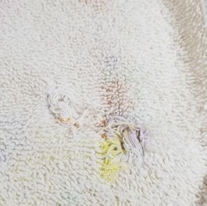 Bath: 1 towel has black marks along edge near fringe and also thread snag hole