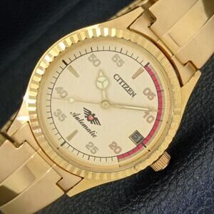 Vintage 1971 Citizen Automatic Mens Gold Watch W/daydate & Red accents