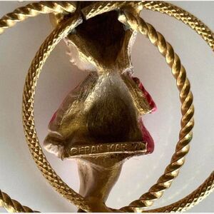 Add a touch of 70s charm to your collection with this vintage Fran Mar Moppet necklace! Made in 1971, it features a sweet little girl in a pink dress holding flowers. Signed “Fran Mar 71,” this rare collectible necklace is perfect for cottagecore, whimsical, retro, and nostalgic jewelry lovers. Preloved with some wear