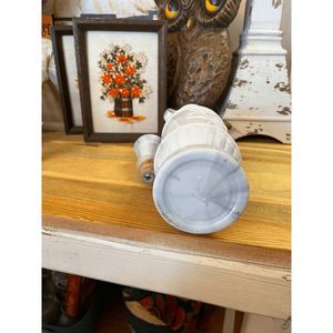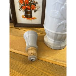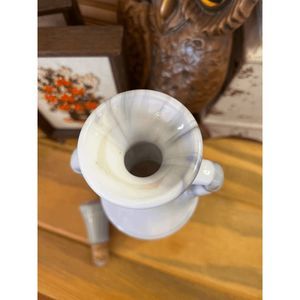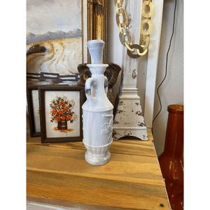 This is a gorgeous vintage White milk glass and gray Marble like Liquor Bottle with lid. (Lid is in amazing condition. Nice seal! Measures 14" tall by 3 1/8" wide. No chips or cracks.