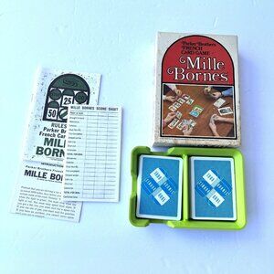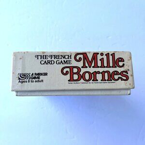 Vintage 1971 Parker Brothers French Card Game Mille Bornes. Game is Complete. Cards, Instructions, And Score Sheets Are In Excellent Condition. Box Has Some Staining. Light Musty Smell From Age.
