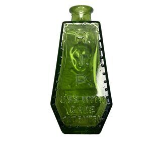 Vintage 1971 Wheaton Mini Green Glass Poison Bottle Coffin Skull Crossbones RIP
